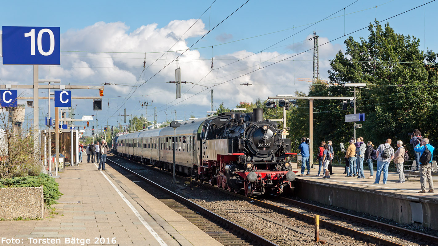 Start der Dampfsonderfahrt durch den Hamburger Hafen mit 86 333 und E94 103 / Metrans 295 091-3 im Personenbahnhof Hamburg-Altona