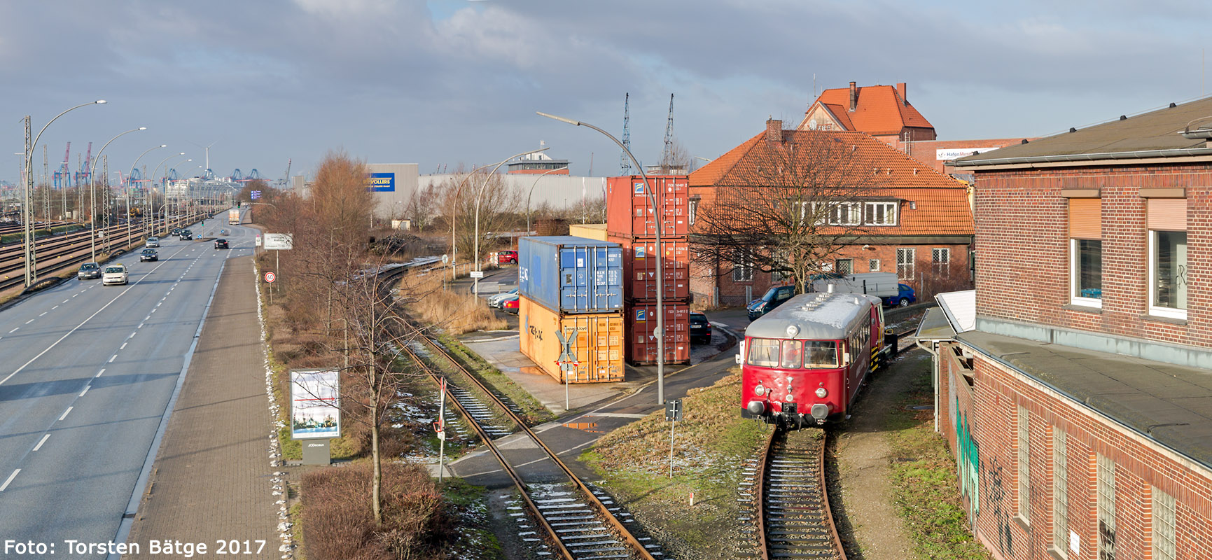 hier in der Zufahrt zum Schuppen 50; Januar 2017; Foto/Panoramabild © T. Bätge